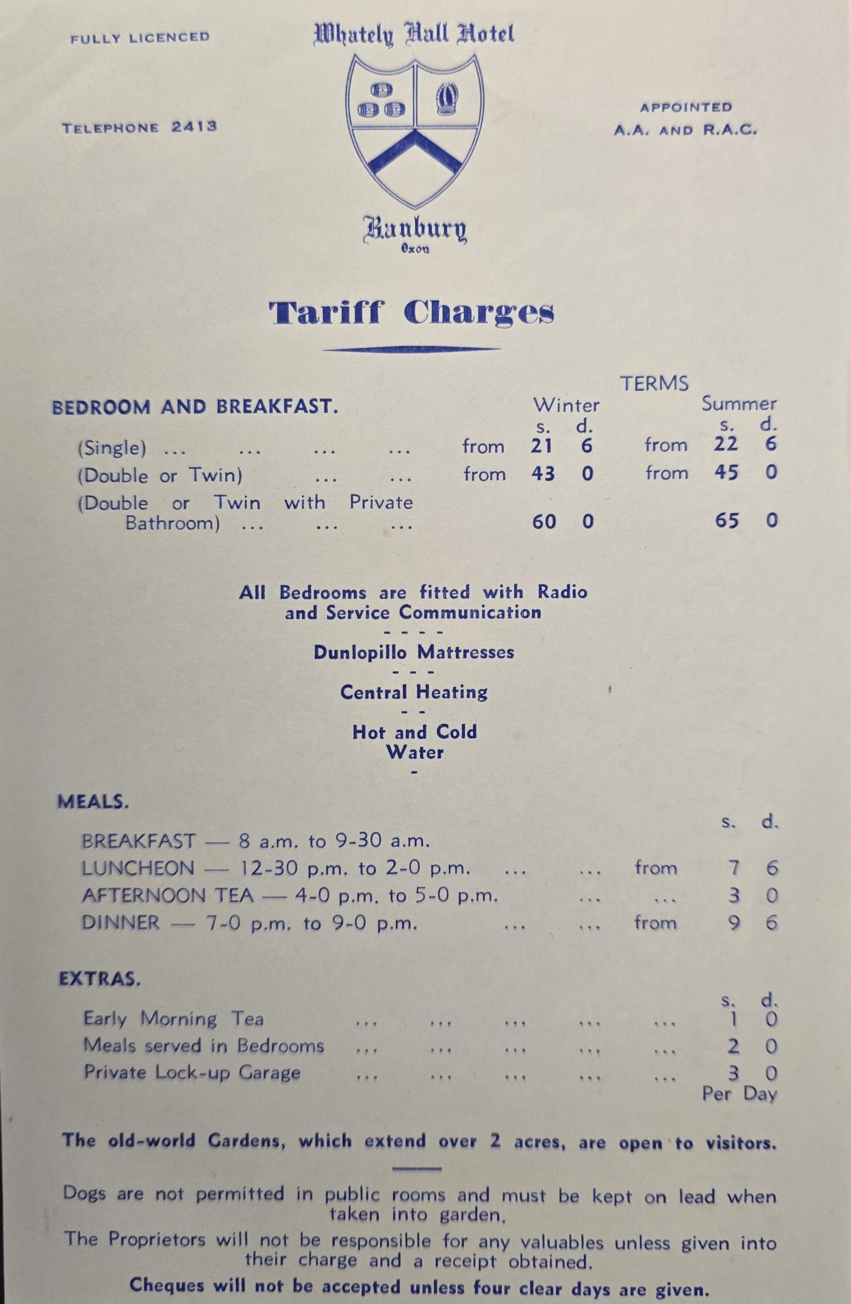 A local hostelry owner, Charles Stokes, built the original structure that is now the main part of the Whately Hall Hotel in the mid-17th Century. It was originally called ‘The Three Tuns Inn’ and its licence is on record from 1677.